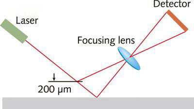 圖1. 激光三角檢測術(shù)通過對精確聚焦激光探測束的反射來推算凸點(diǎn)的高度