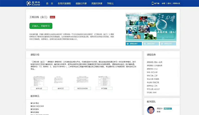 浙江大學(xué)傅建中老師【教授、博導(dǎo)、國家級教學(xué)示范中心主任、中組部“萬人計劃”創(chuàng)新創(chuàng)業(yè)人才,國家科技部科技創(chuàng)新創(chuàng)業(yè)領(lǐng)軍人才,浙江省優(yōu)秀科技工作者】主持的國家級精品資源共享課“工程訓(xùn)練(金工)”上線“愛課程網(wǎng)”累計已有近50萬學(xué)習(xí)人數(shù)。