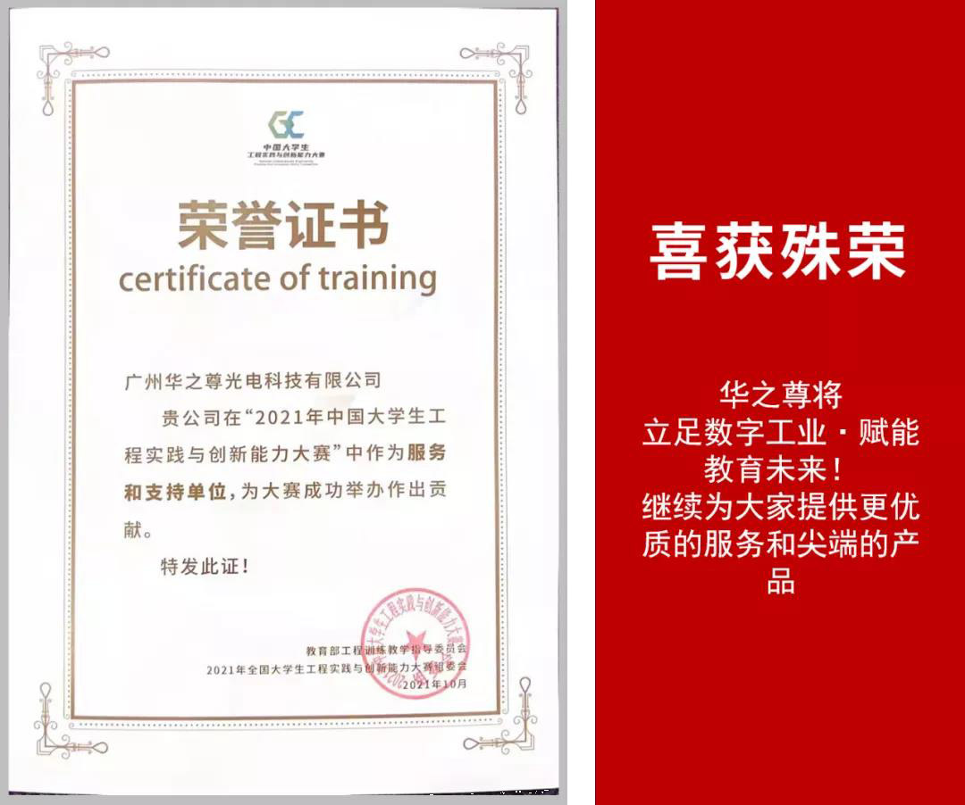 ● 華之尊很榮幸能成為本次大賽指定的服務和支持單位,為了解決學生激光加工環(huán)節(jié)的問題,我們提供了目前工業(yè)制造與各大高校常用的一款精密型HZZ-V4000激光切割雕刻一體機,它的有效工作幅面達到1000mm*600mm,運用數(shù)位式功率控制,可由0.1—100%無段控制,且可依圖形成比例的控制脈波產(chǎn)生速度,同時可依圖形顏色設(shè)定不同功率。采用5G加速度,最大速度達到3600m/s,大大提高了工作效率,一鍵式打印輸出,無需轉(zhuǎn)換,避免圖形在轉(zhuǎn)化過程中失真,從而使產(chǎn)品精度得到更高保證,操作就是這么方便簡單!