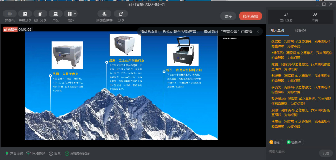 鑒于近期新冠疫情防控形勢(shì)嚴(yán)峻,以及為滿足大家對(duì)第八屆浙江省大學(xué)生工程訓(xùn)練綜合能力競(jìng)賽暨2021年浙江省大學(xué)生工程實(shí)踐與創(chuàng)新能力大賽激光設(shè)備使用的迫切需求,作為大賽競(jìng)賽社區(qū)的激光加工設(shè)備支持單位的華之尊激光,于3月31日通過線上的方式進(jìn)行“數(shù)字能力(激光)創(chuàng)新應(yīng)用”培訓(xùn)。參加此次培訓(xùn)的高校有浙江大學(xué)、浙江農(nóng)林大學(xué)、溫州大學(xué)等25所,參加培訓(xùn)師生有百余人。