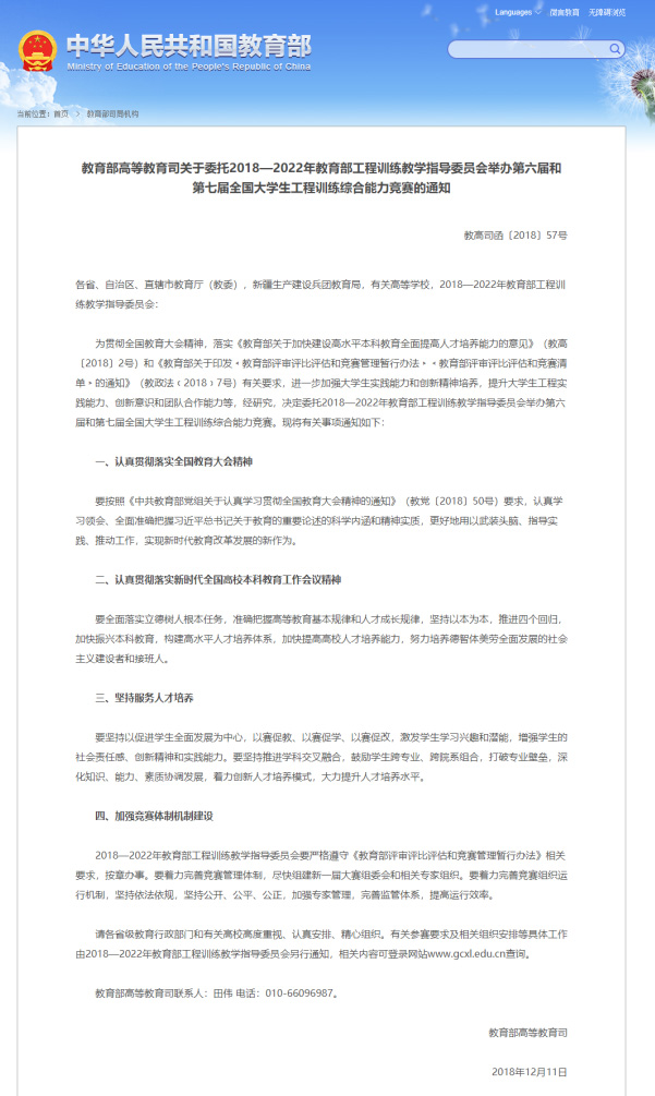 中國(guó)大學(xué)生工程實(shí)踐與創(chuàng)新能力大賽是教育部高等教育司發(fā)文舉辦的全國(guó)性大學(xué)生科技創(chuàng)新實(shí)踐競(jìng)賽活動(dòng),是基于國(guó)內(nèi)各高校綜合性工程訓(xùn)練教學(xué)平臺(tái),為深化實(shí)驗(yàn)教學(xué)改革,提升大學(xué)生工程創(chuàng)新意識(shí)、實(shí)踐能力和團(tuán)隊(duì)合作精神,促進(jìn)創(chuàng)新人才培養(yǎng)而開展的一項(xiàng)公益性科技創(chuàng)新實(shí)踐活動(dòng)。