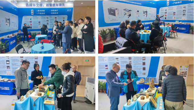 華之尊激光現(xiàn)場(chǎng)展示各類型精密激光加工設(shè)備,適用于藝術(shù)設(shè)計(jì)類專業(yè)的樣品,以及豐碩的產(chǎn)教融合成果,現(xiàn)場(chǎng)參觀的老師和學(xué)生無(wú)不驚嘆激光的精妙絕倫。個(gè)性化定制激光制作服務(wù)讓老師們切身體驗(yàn)藝術(shù)與科技相融合的創(chuàng)新應(yīng)用,激光科技為傳統(tǒng)文化的傳承和發(fā)展注入全新動(dòng)力。