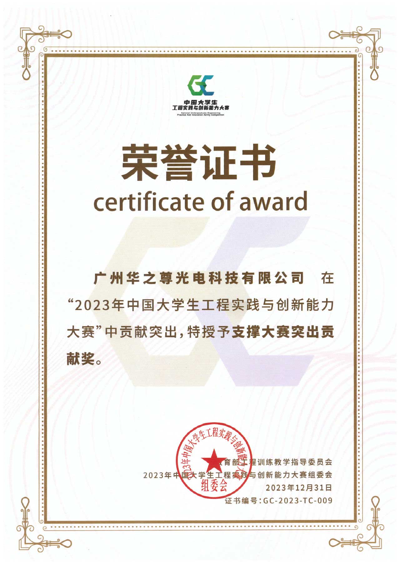 2024年2月24日,2023年中國(guó)大學(xué)生工程實(shí)踐與創(chuàng)新能力大賽總結(jié)表彰大會(huì)在海口圓滿落幕!在這一盛會(huì)中,廣州華之尊光電科技有限公司被授予