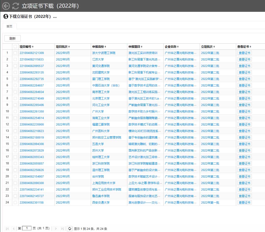 產(chǎn)學(xué)合作項(xiàng)目一經(jīng)公示就受到了各地高校的咨詢,華之尊按照教育部的要求對(duì)申報(bào)項(xiàng)目進(jìn)行評(píng)審,2022年共立項(xiàng)24個(gè)項(xiàng)目,覆蓋北京理工大學(xué)、上海應(yīng)用技術(shù)大學(xué)、西安交通大學(xué)、廣州大學(xué)、江蘇大學(xué)等眾多高校。